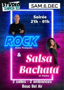 Le Studio Dance 13 organise des soirées dansantes à Bouc Bel Air (dans le village Décathlon) depuis plus de 6 ans. Nous proposons des soirées variées dont les thèmes privilégiés sont les danses à deux : la Salsa, Bachata, Kizomba le Rock, le Rock Swing et le Tango Argentin. Les Dj changent d’un thème à l’autre de manière à vous proposer des musiques adaptées. Consultez notre planning car nous vous proposons des soirées tous les mois !